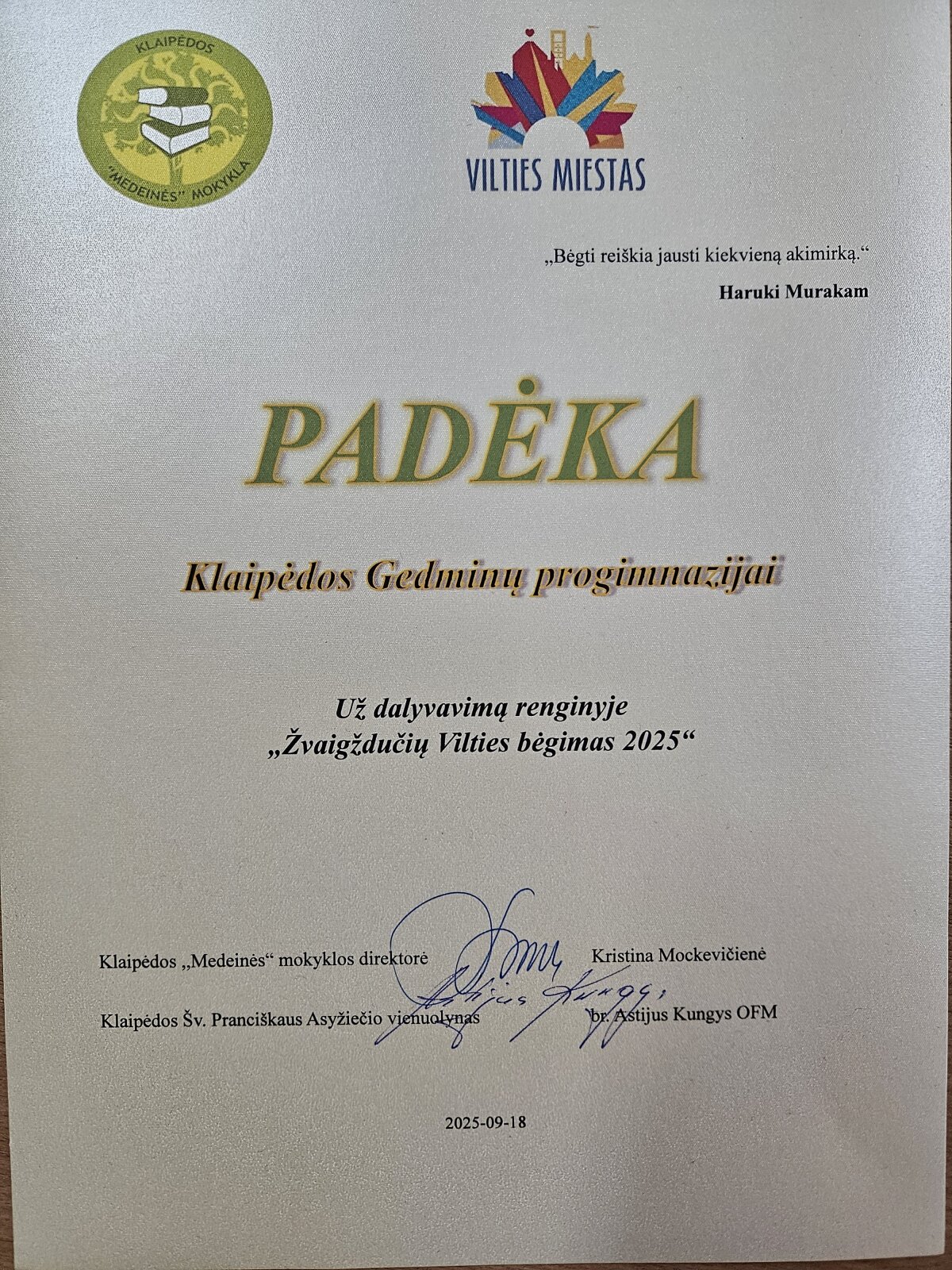 Tai ne tik sporto varžybos, bet ir kelionė, kurioje kiekvienas žingsnis tampa šviesos, vilties ir draugystės dovana. Šį gražų bėgimą be pralaimėtojų organizuoja Klaipėdos „Medeinės“ mokykla ir Vilties miesto bendruomenė, įsikūrusi Klaipėdos Šv. Pranciškaus Asyžiečio vienuolyne.